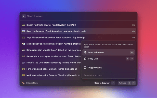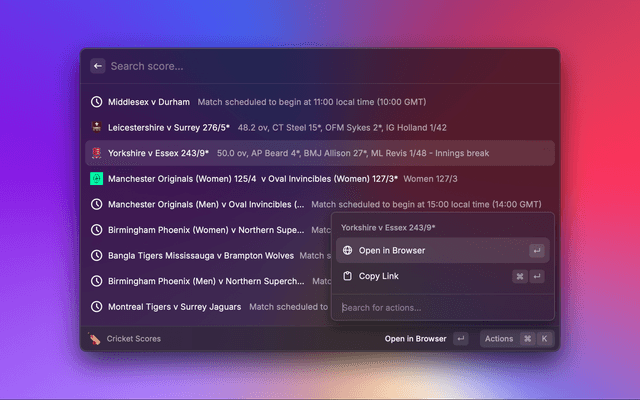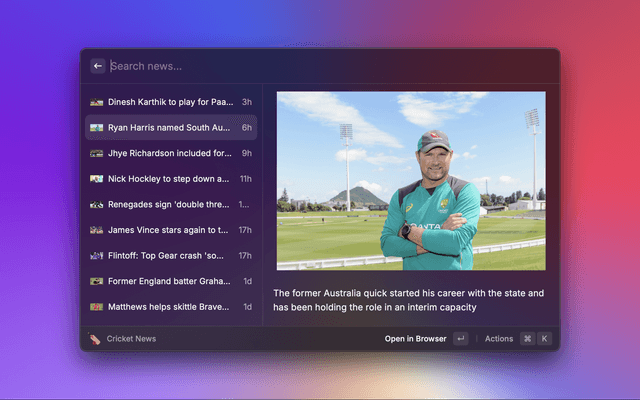 Check the cricket score and news through Raycast!