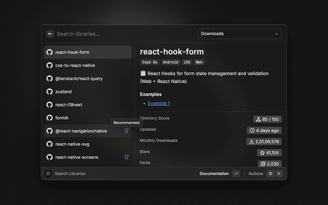 This extension uses data from the React Native Directory project, which is maintained by the React Native community.