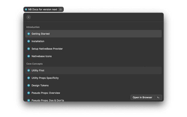 This extensions helps you to search Nativebase documentations by specific versions.