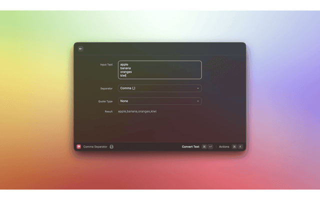 A Raycast extension to convert text into separated values with customizable delimiters and quote options.