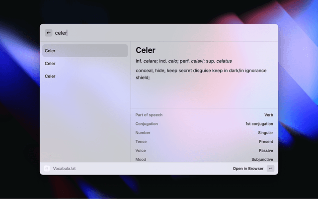 Extension does not support search in the Czech Dictionary of Medieval Latin as the website does. Is is partially due to copyright concerns, but also because it uses a different response format than the main dictionary.