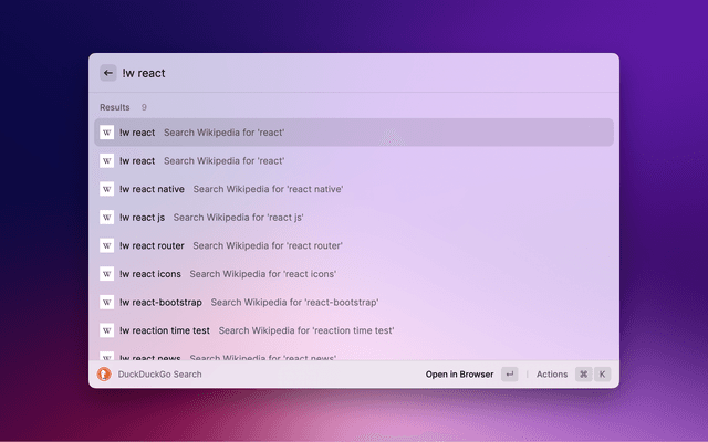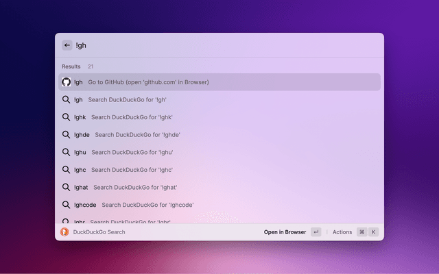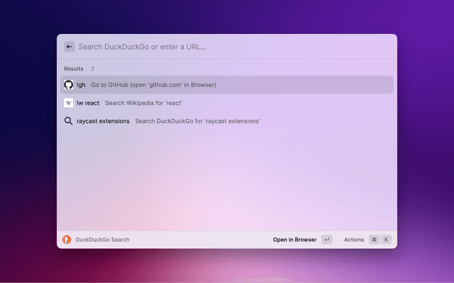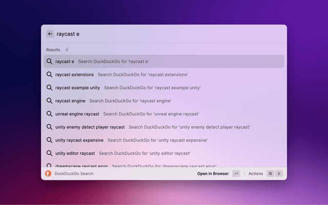 DuckDuckGo search extension for Raycast, with support for suggestions.