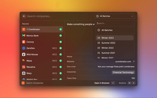 Search all Y Combinator companies and get a countdown until demo day to stay focused on your goals.