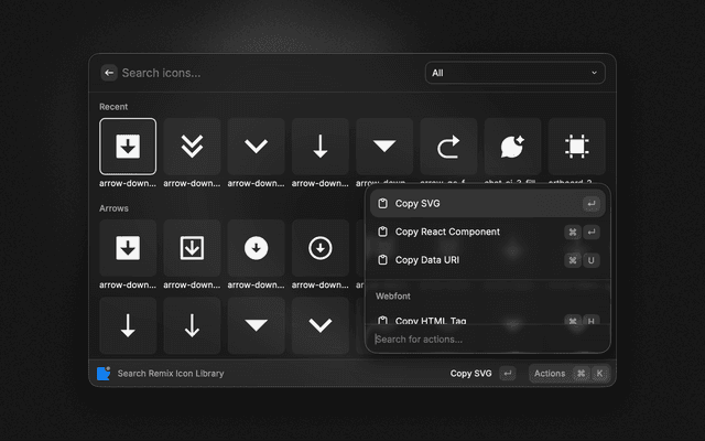 Search and browse icons from Remix Icon library