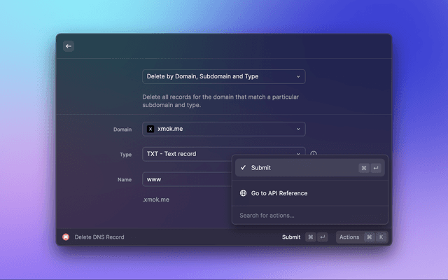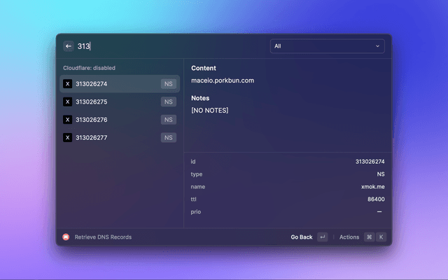This is a Raycast extension for Porkbun. With this extension, you can: