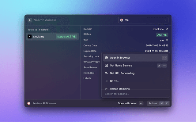 Interact with Porkbun with the help of Raycast